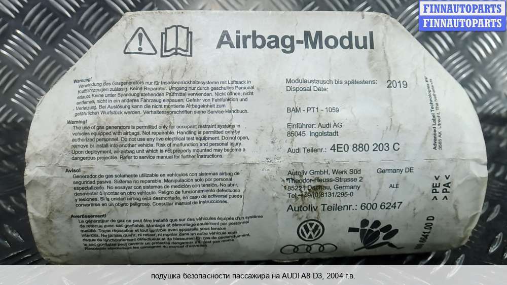 Купить подушку безопасности пассажира (Air Bag) на Audi A8 (D3, 4E) (Ауди А8 Д3) в Санкт-Петербурге :